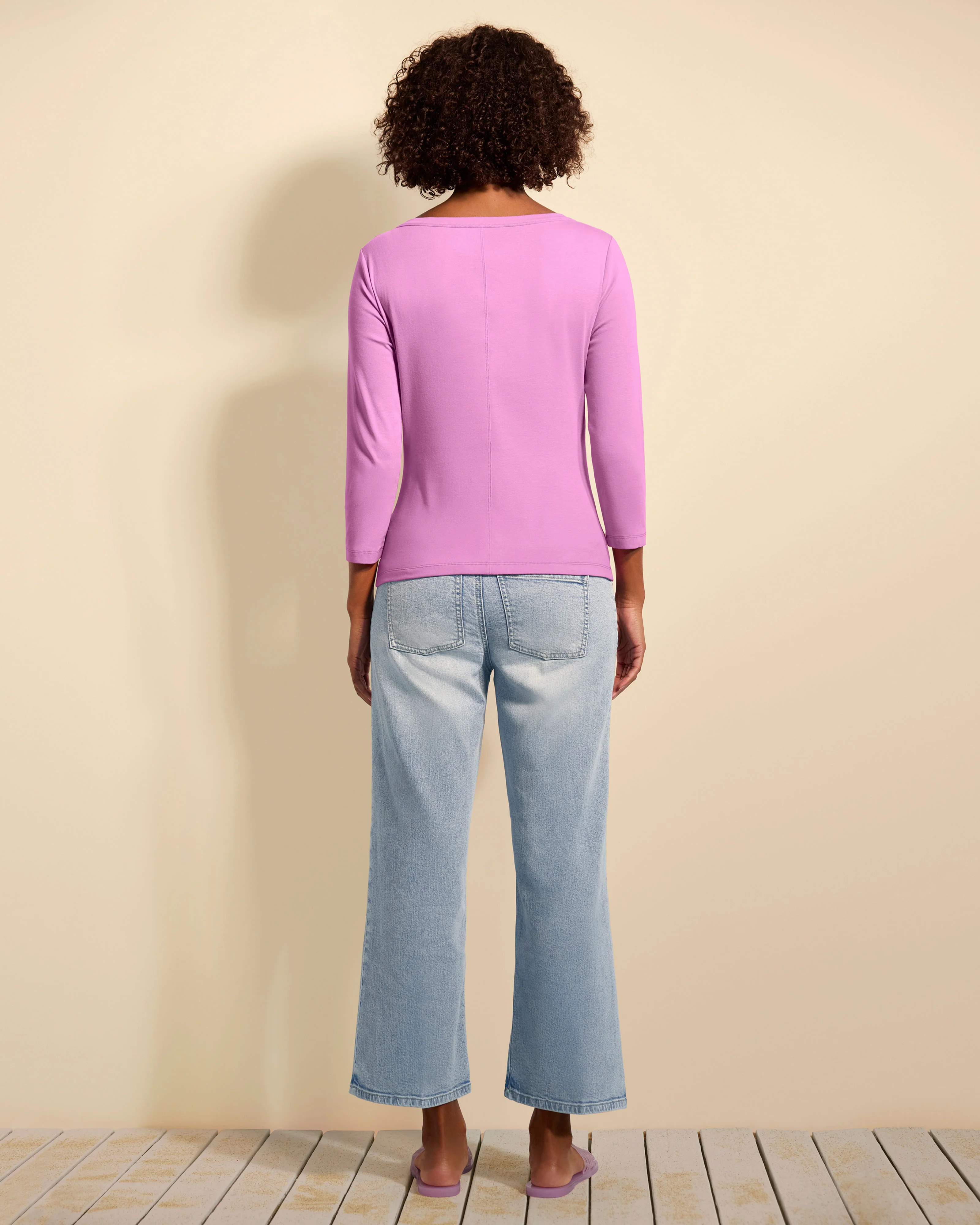 Everyday style is always on point. The Ballet Tee comes in a trending high-neckline and three-quarter length sleeves to transition easily between the seasons. Also available in white, this candy pink ballet neck top is simple, soft, and perfectly chic.