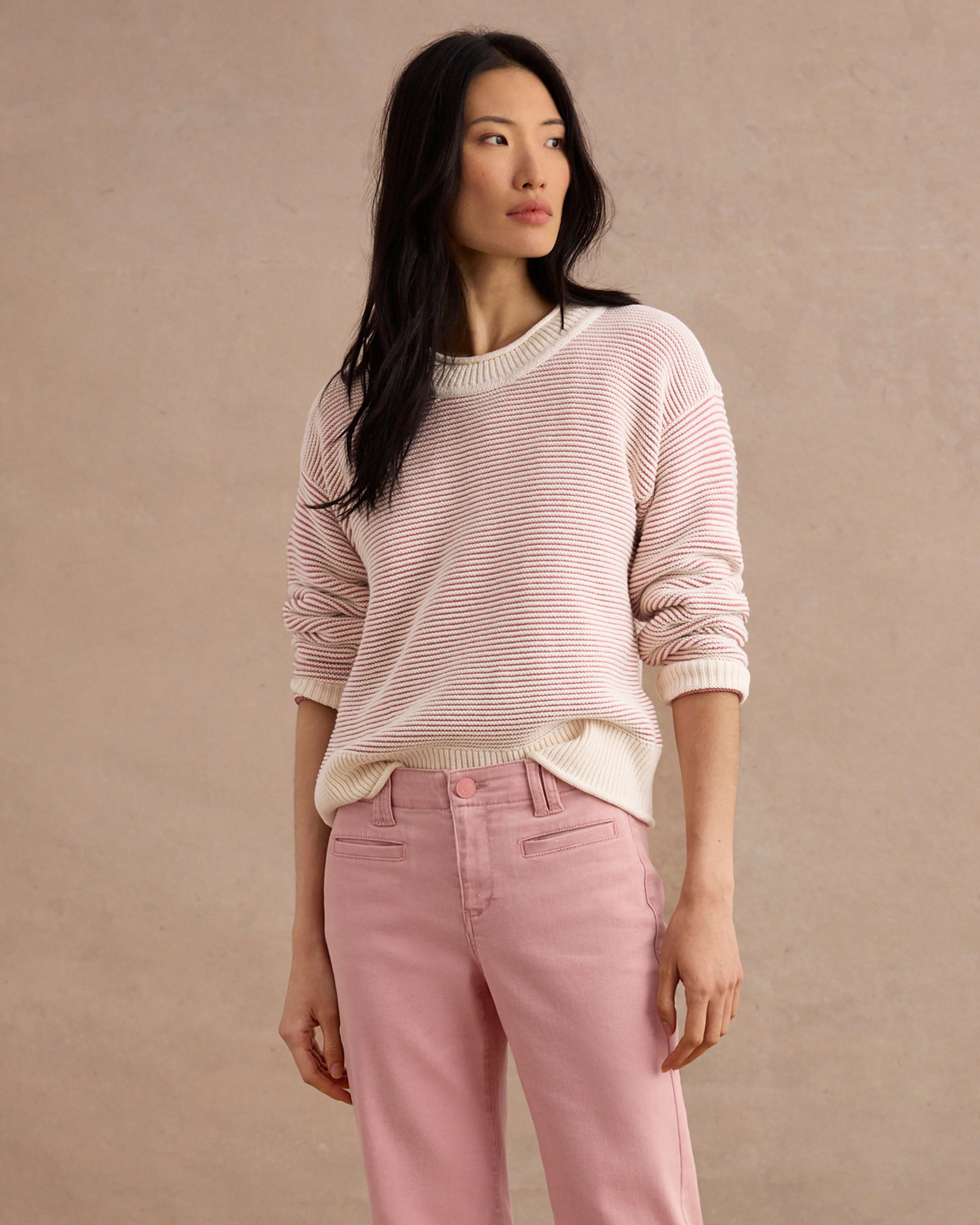 Everybody needs a crisp, pink stripe sweater in their wardrobe. The Baseline Sweater is the perfect relaxed fit with a horizontal knit pattern that makes for a great transitional piece. Its solid ribbed neck, hem, and cuffs stand out as a classic detail. Pair back with denim or our Paloma Crop pant.