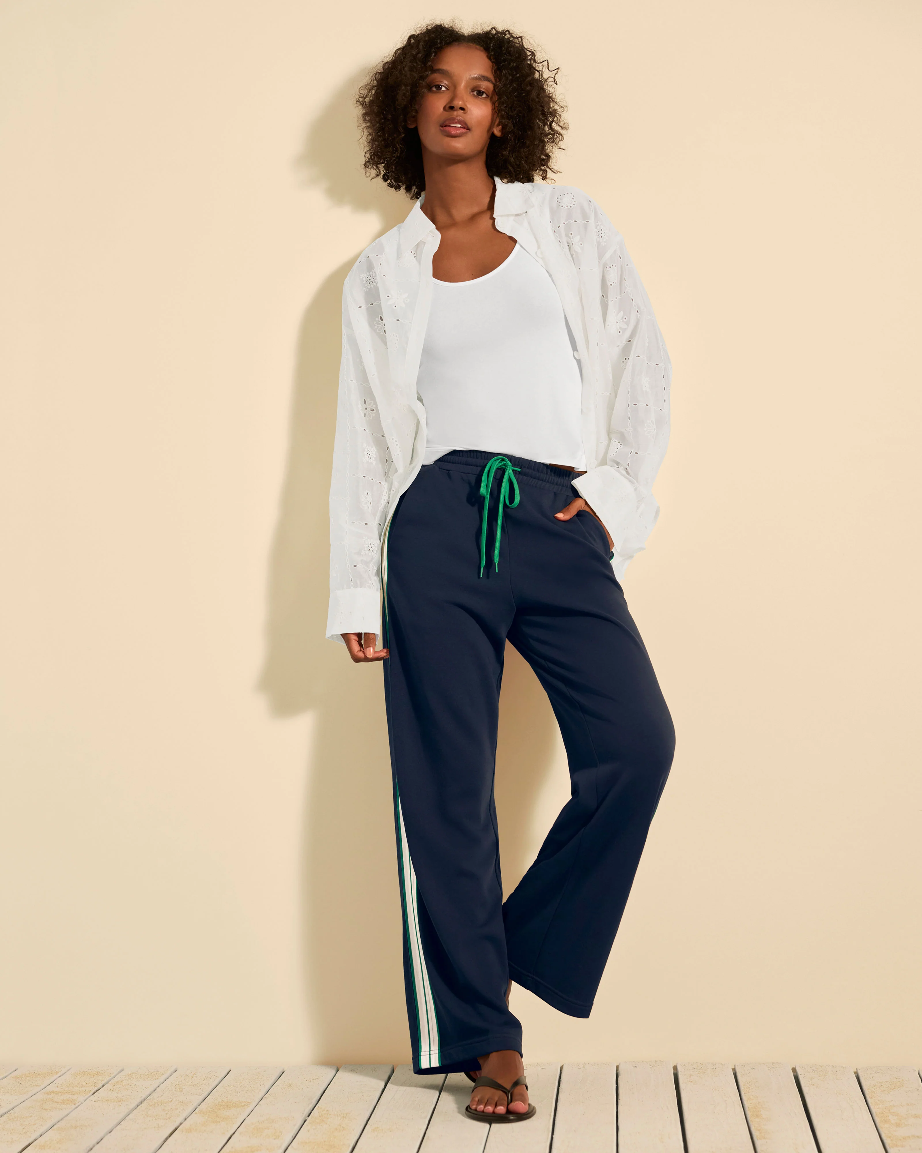 The same silhouette as your Spring ’25 favorite, this Charm Tank comes in a white jersey knit featuring a scoop neckline and non-adjustable straps. our white fitted tank is also bra-friendly, so you can confidently wear it solo or pair it under the sheer Silhouette Blouse.