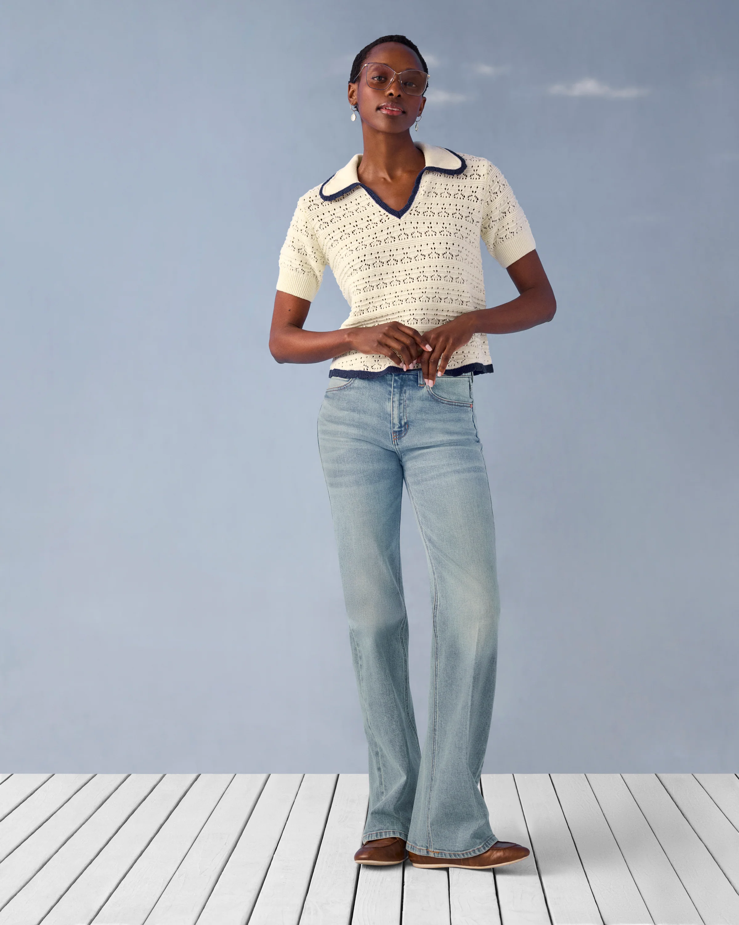 Channel your inner coastal chic with the crochet-inspired Loom Pullover. This lightweight style features a soft, rounded collar with contrast scallop detailing along the hem. Breezy and easy to style, our short sleeve crochet top packs well for a spring adventure and pairs effortlessly with a solid tank for more coverage.