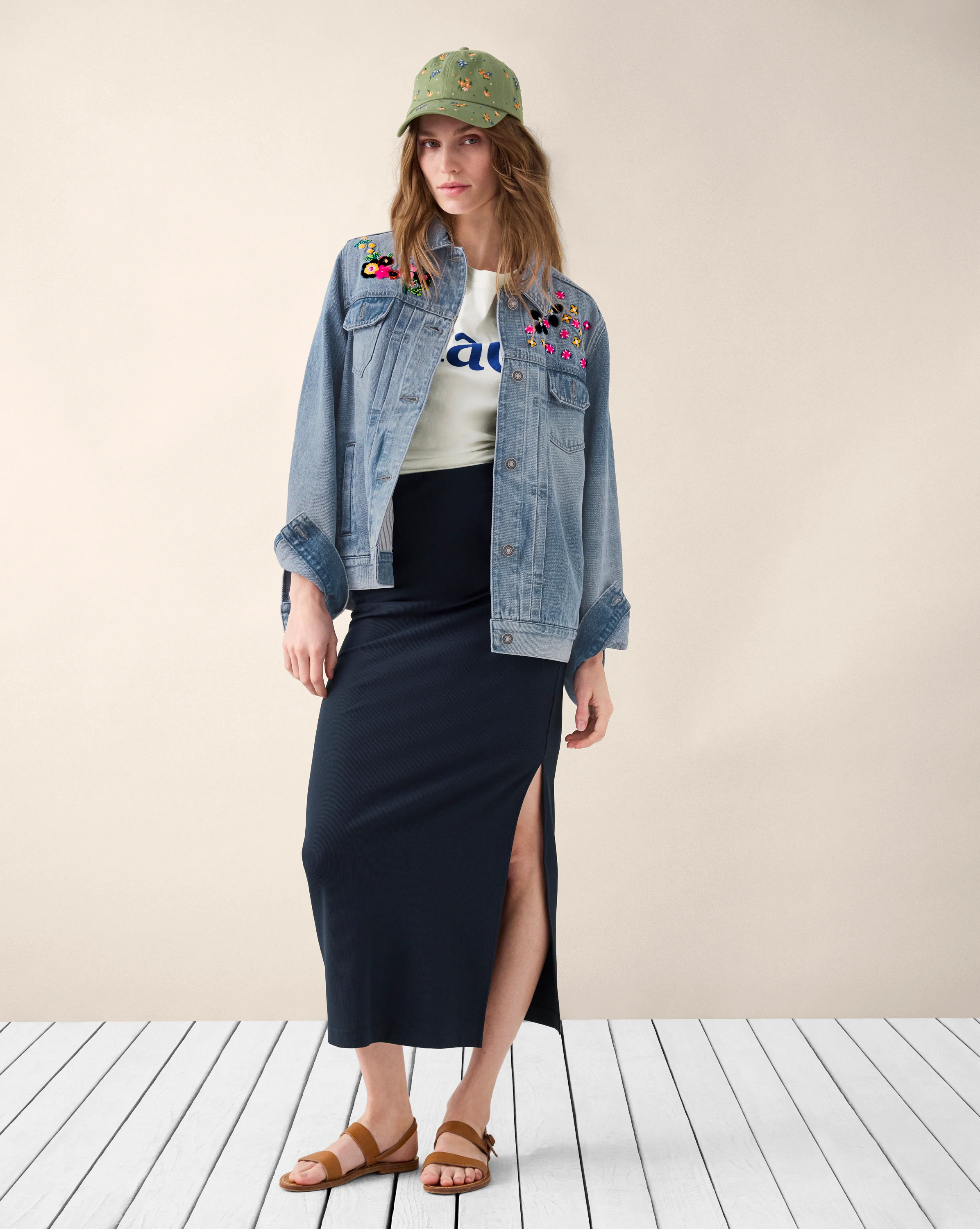 A true closet staple, the Meadow Jacket adds a touch of femininity to a utility style. Front and back floral embroidery blooms in a garden of colors, making this jacket pop. Designed with a relaxed fit, our floral embroidered denim jacket also features deep pleats, flap pockets, and a banded hem for added structure.