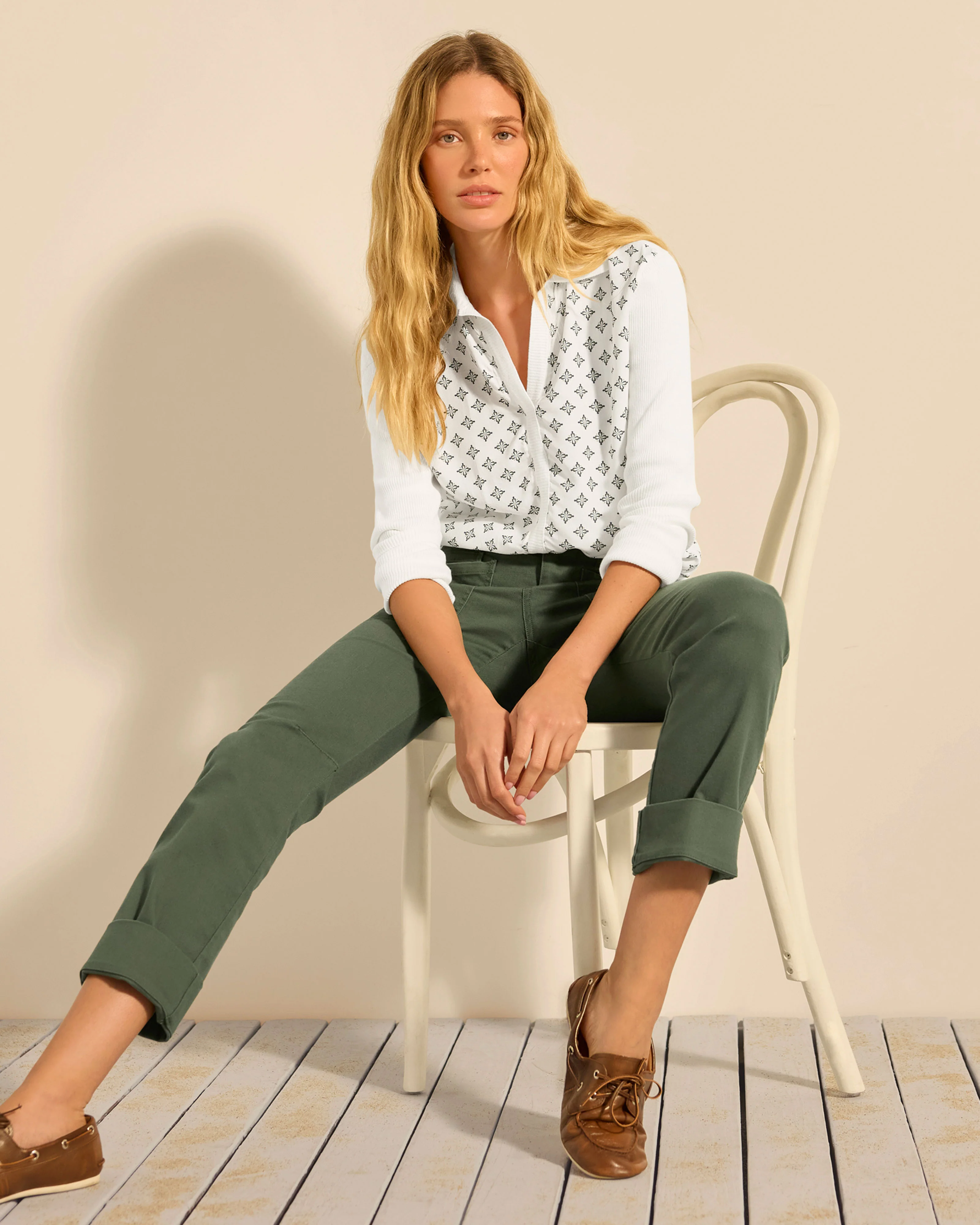 Fall’s favorite olive hue is denim’s cooler cousin in the Navigator Pant. Blending high-rise comfort with straight-leg style, it’s the casual, go-with-everything pant your wardrobe needs. Designed with large, angled pockets and cuff-worthy wide hems, your fashion compass will be pointing to cool, laid-back looks. Shop your new favorite olive green pants today.