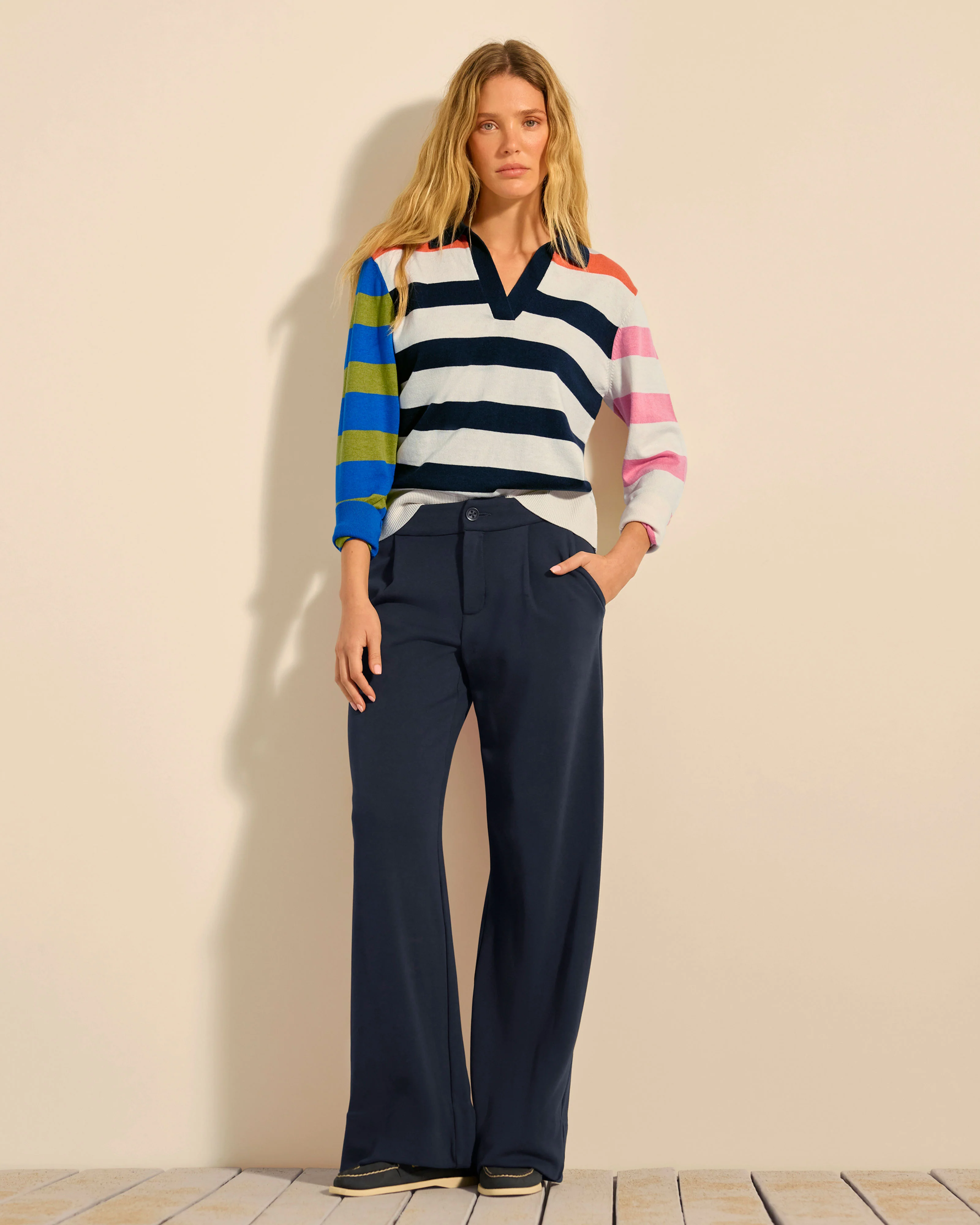This preppy trend gets a fresh take! The Rugby Pullover is a well-loved classic, but this time in allover multicolor stripes. With its easy fit thanks to slightly dropped shoulders, a traditional polo collar and henley placket, our women’s rugby sweater just became your weekend MVP.