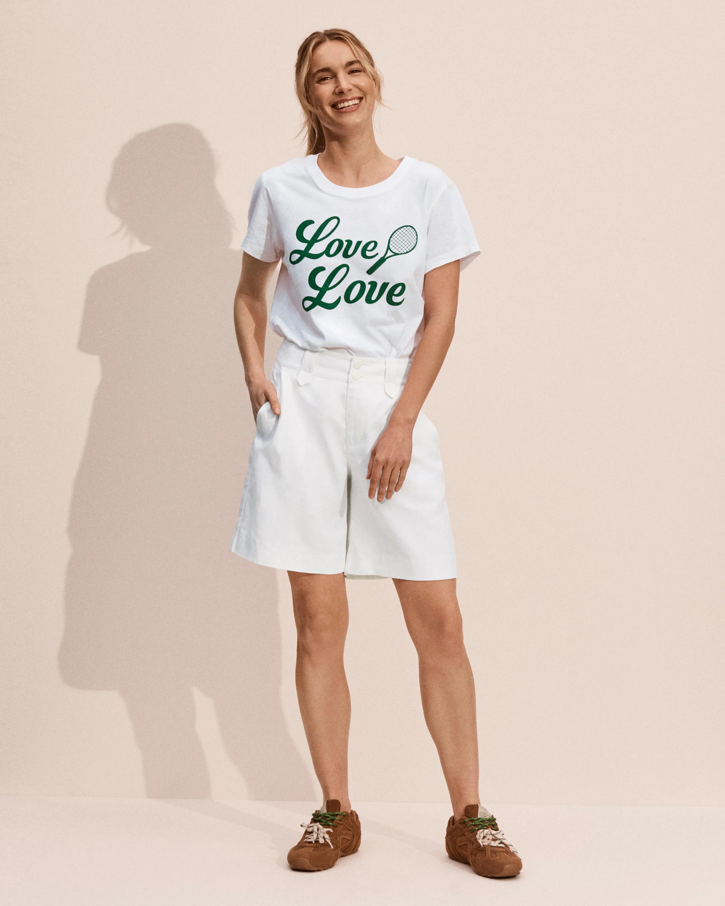 The Summertime Short refreshes a classic silhouette in a breezy, linen-viscose blend for an easy, polished fit. A fixed waistband with a double button-front closure and zipper provides structure and comfort. Inspired by the Run Around Bermudas, these longer-length shorts capture a runway-ready vibe. Pair our white Bermuda shorts with the Love All Tee for everyday style or with the Shelly Vest for a chic, put-together look.